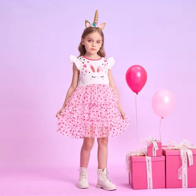 Available in various sizes, this dress is designed to fit girls of all ages. Whether your child is twirling around the living room or posing for pictures at a family event, she will feel like the belle of the ball in this enchanting dress. Make every moment magical with our Girls' Dress Rabbit Ear Kids Princess Wear Heart Print – a must-have addition to your little one's wardrobe!